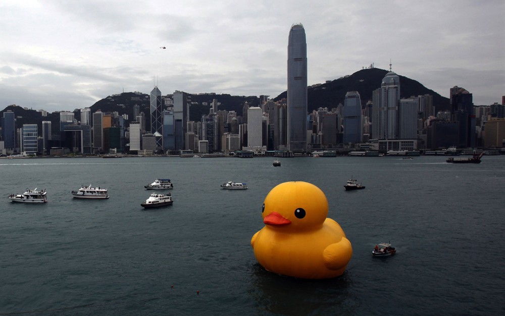 amarelo, de um metro de altura, de dentro do café Goudse Eende, no centro da
